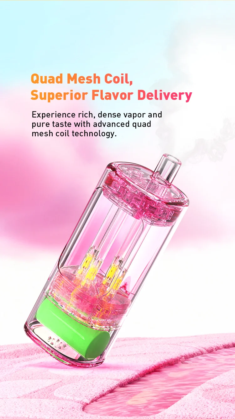 Su innovador sistema de boquilla giratoria permite a los usuarios alternar instantáneamente entre cuatro sabores diferentes en un solo equipo, eliminando la necesidad de llevar múltiples dispositivos. Potenciado por la tecnología Quad Mesh Coil, garantiza un vapor denso y un sabor excepcionalmente puro desde la primera hasta la última inhalación.