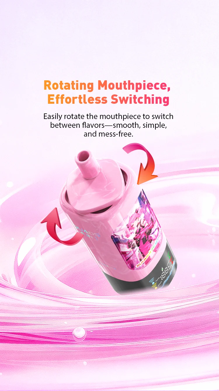 • Sistema 4-en-1 con Boquilla Giratoria: Gracias a su diseño innovador, los usuarios pueden rotar la boquilla para cambiar instantáneamente entre cuatro sabores distintos. Esta flexibilidad permite disfrutar de una experiencia fresca en cualquier momento sin necesidad de cargar múltiples dispositivos.