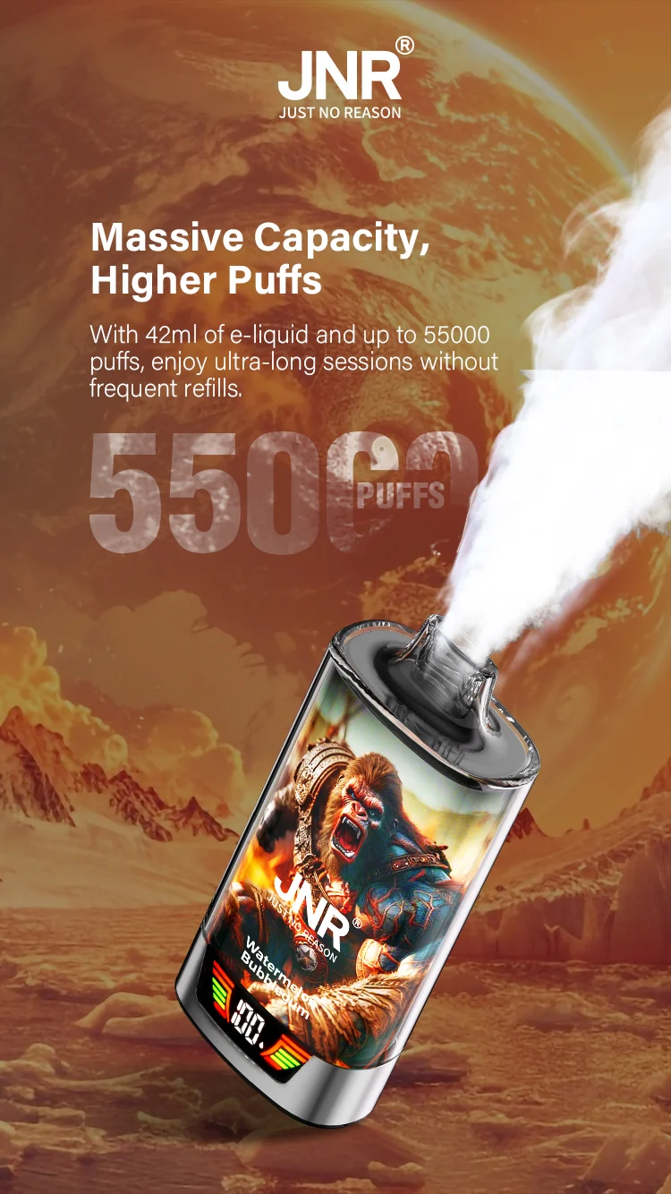 Prepárate para una bestia del vapeo. El Vapeador Desechable JNR RageGorilla 55000 Puffs llega con un diseño visual impresionante y un rendimiento extremo. Capaz de entregar hasta 55,000 caladas, es la opción definitiva para quienes buscan un poder verdaderamente duradero. 💨